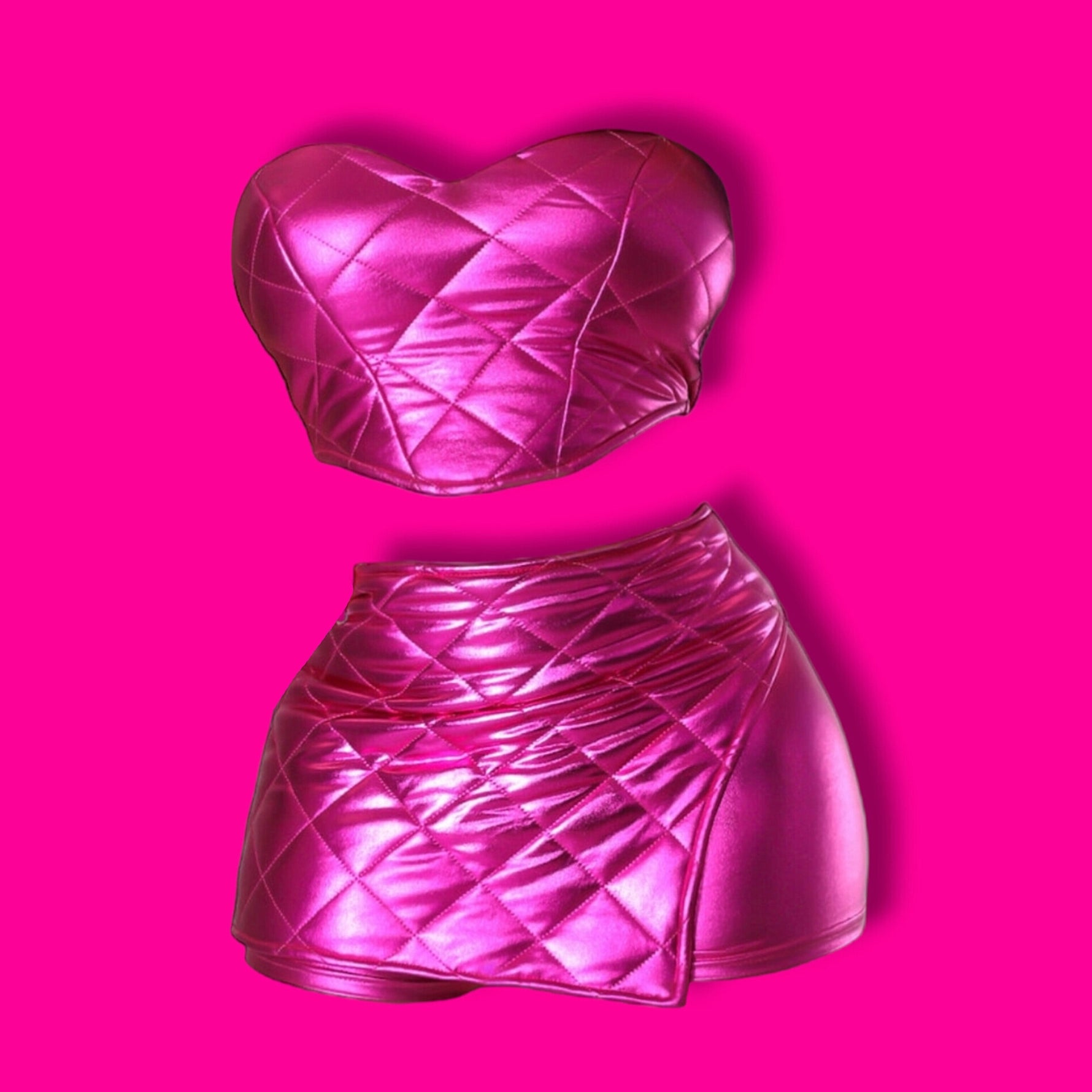 Become a fashionista with this chic two-piece skirt set! Its corset top features a sweetheart neckline and quilted fabric, with zipper closure at the back. The set includes high waisted shorts with quilted fabric detail and zipper closure. Step out in style and create your own perfect look!