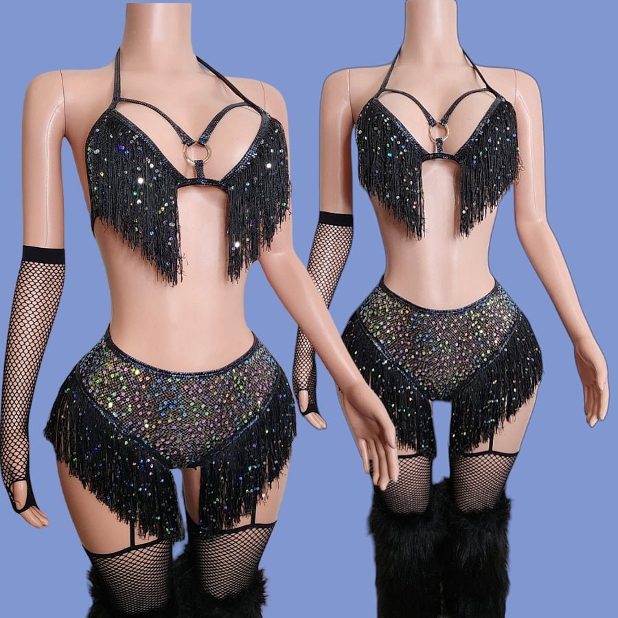 Look amazing at your next rave in this fabulous two-piece set! The unique style features a fringe top and matching bottoms, guaranteed to make you stand out from the crowd. Be striking and confident in Don't Play With It - the perfect ravewear to show off your personal style.