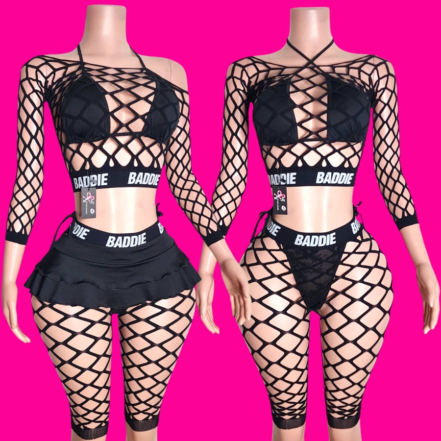 Step into the world of seduction and become the center of attention in our Next Chapter Exotic Dancewear. This set features a wide net crop top and biker style bodystocking, designed to showcase your curves and ignite your confidence.